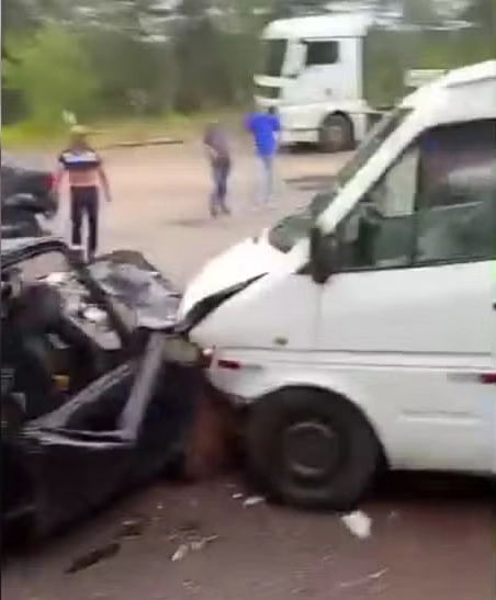 Acidente entre carro e van deixa duas pessoas em estado grave em rodo...