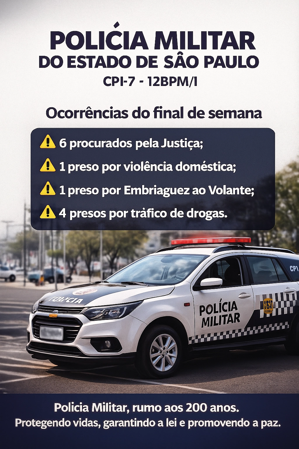 Polícia Militar do Estado de São Paulo registra prisões e capturas du...